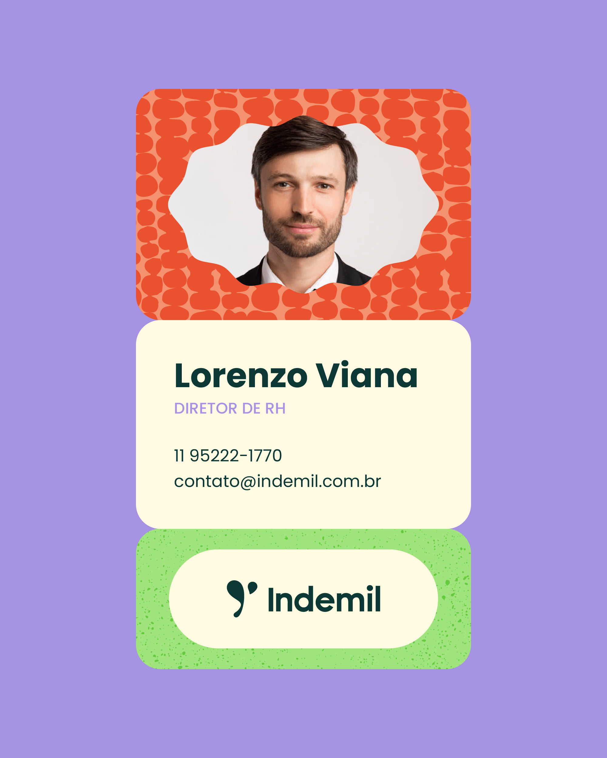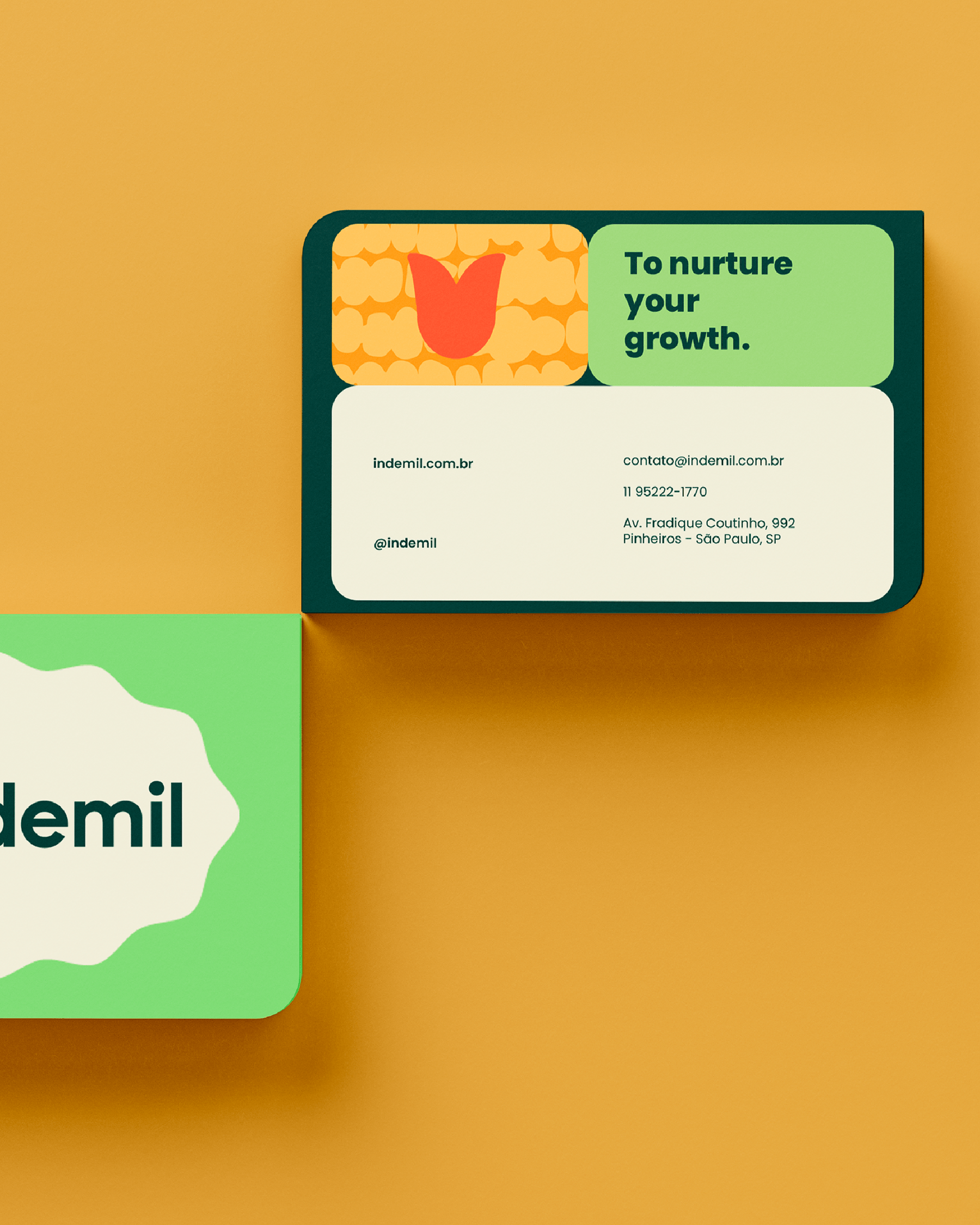 Toda a expressão verbal de Indemil se mantém no campo da proteção, acolhimento e responsabilidade, destacando um compromisso com a qualidade, segurança e agilidade.
