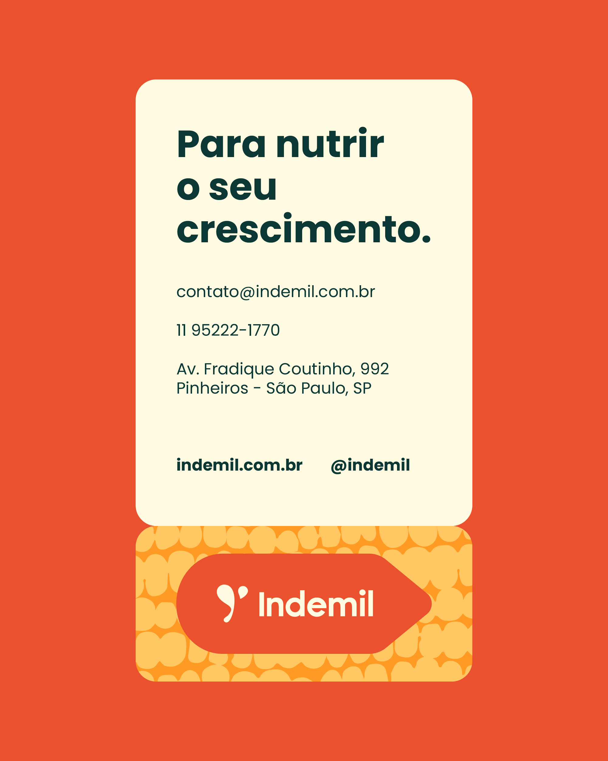 Resumo do desafio: Como construir uma marca que transmita robustez e credibilidade, mas com um posicionamento que também fosse capaz de gerar conexões emocionais? Como garantir elasticidade para Indemil se relacionar tanto com a indústria alimentícia, quanto com clientes finais?