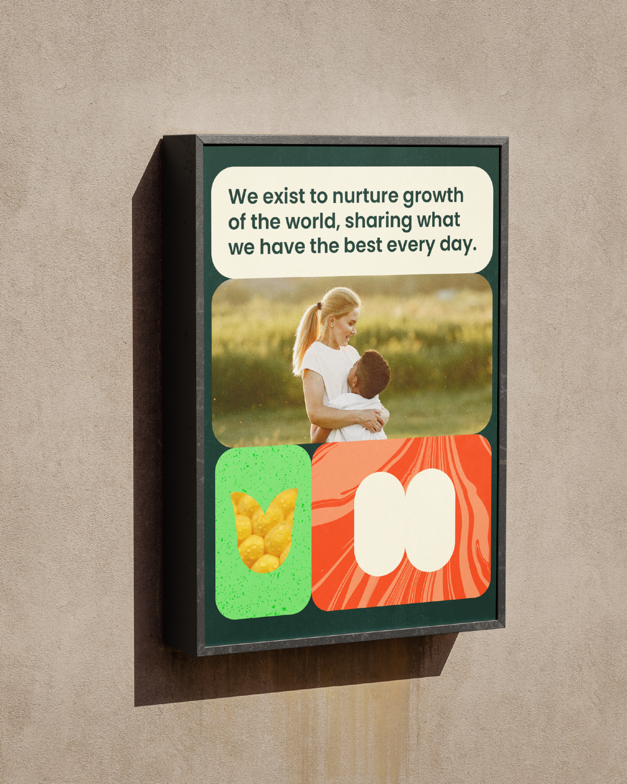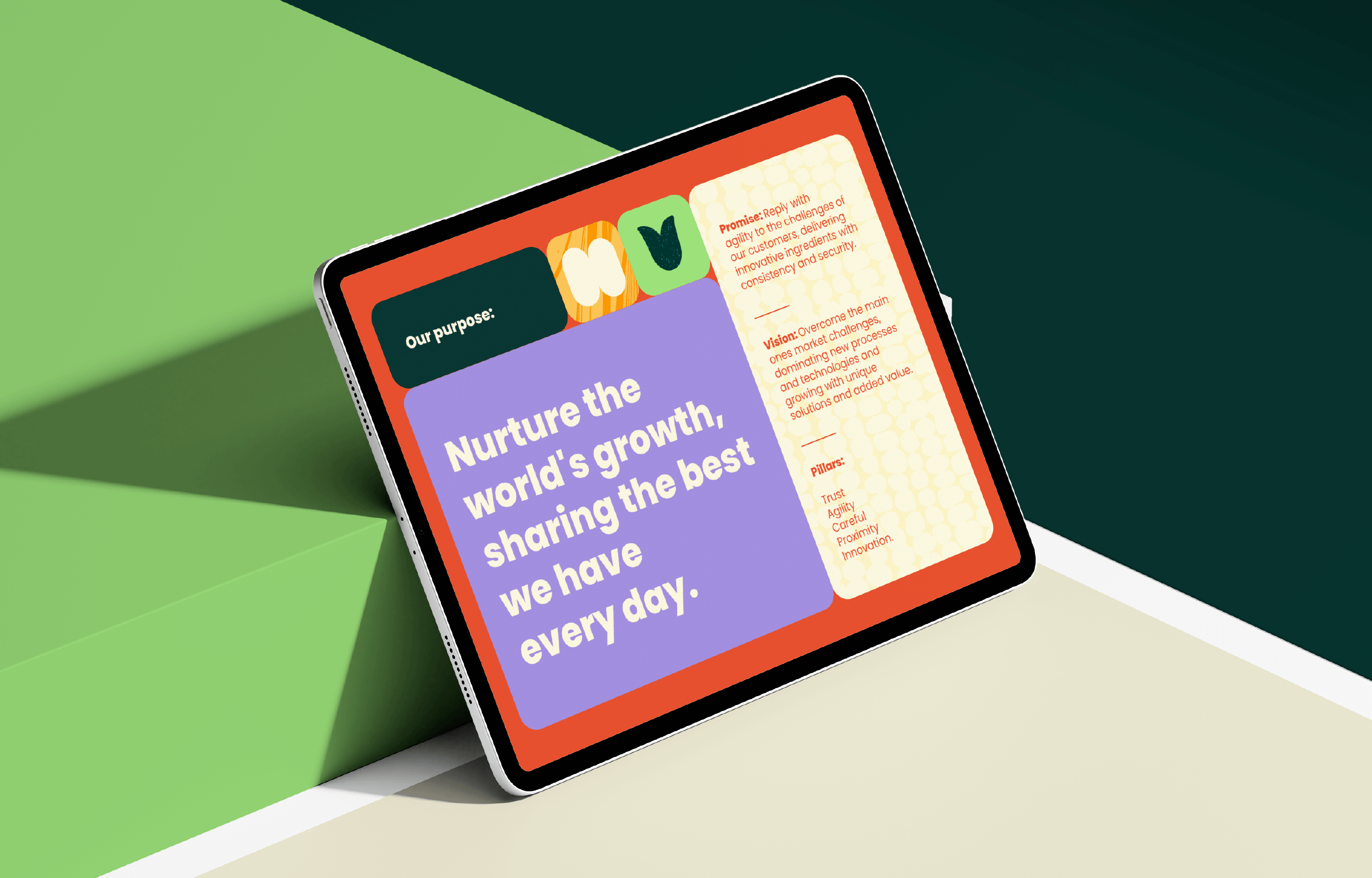 Para transmitir o cuidado e a proximidade presentes no novo posicionamento, introduzimos o verbo “nutrir” como protagonista da linguagem verbal. Nesse sentido, o propósito da marca tornou-se: “nutrir o crescimento do mundo, compartilhando o que temos de melhor todos os dias”.